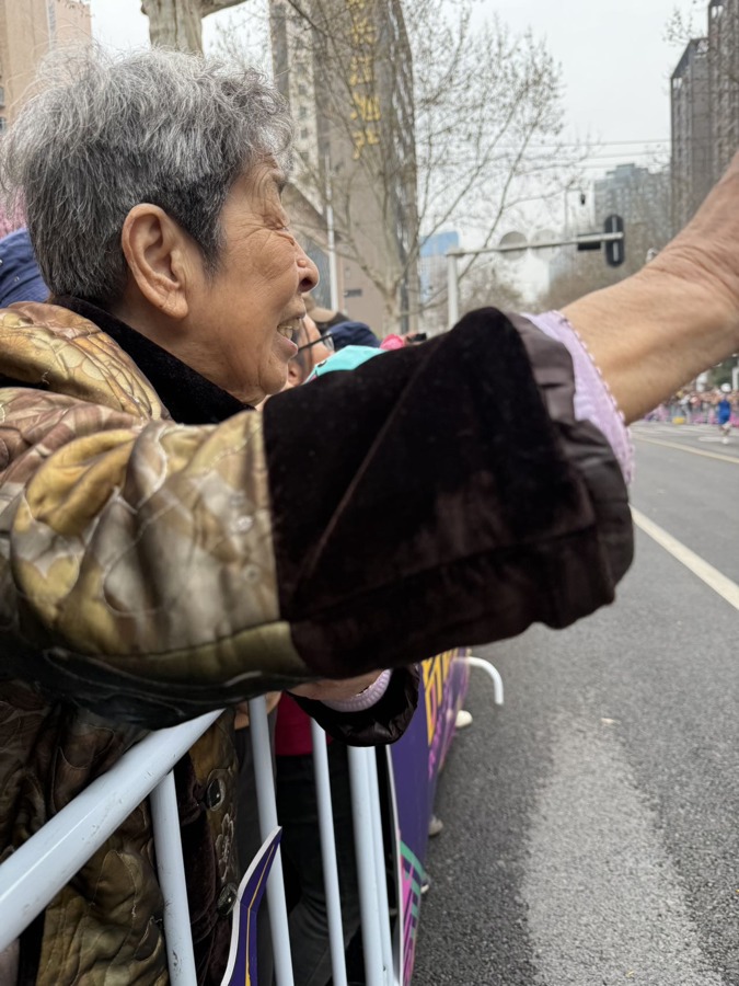 3月22日,武汉马拉松赛道旁,一位满头银发却精神矍铄的老人格外引人注目。她手持手机,专注地为每一位跑过的选手拍照,脸上洋溢着灿烂的笑容。