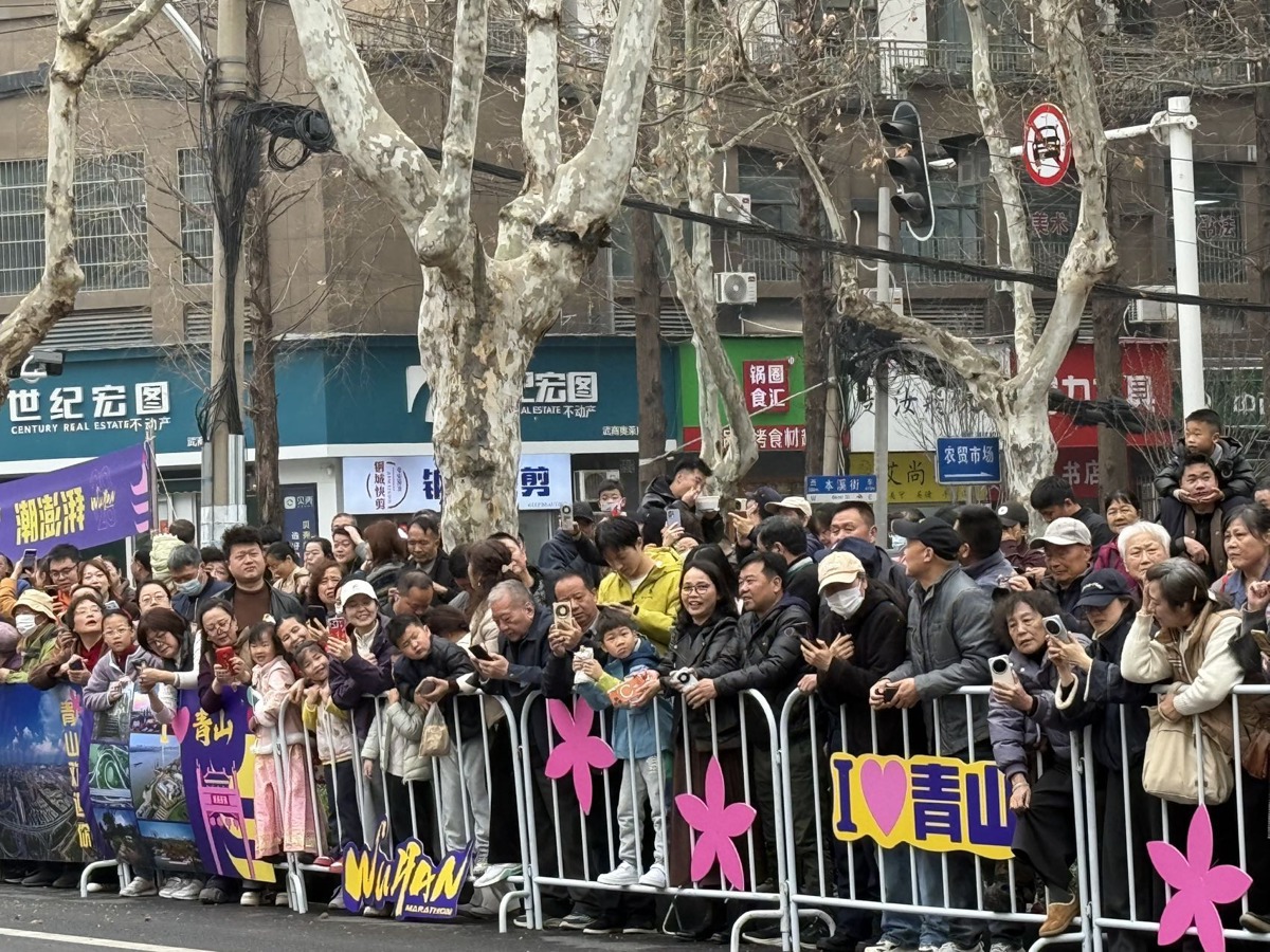 记者现场看到,汉马赛道沿途,像田女士一家这样自发前来助威的市民数不胜数。路边满是热情的武汉市民,他们或挥舞旗帜,或击掌相迎,用一声声“加油”为奔跑者注入源源不断的动力,在这座英雄城市的春天里尽情绽放。