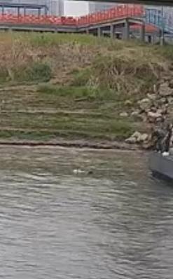 “救命啊!”正在备勤汉马保障的水上城管江华听到呼救声后,发现江中沉浮的女子,立即跑向垫垱处。几乎在同时,同样听到呼救的另一名水上城管潘学军,急忙抓起一把长长的钉耙,赶往垫垱。