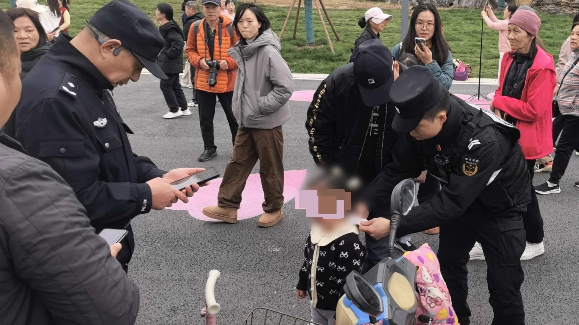 “小朋友不哭,叔叔带你找妈妈。”3月19日傍晚,巡特警大队民警曾勇、辅警王天龙、阮胜钧、裴伟在樱花大道巡逻时,发现一名三岁女童与家人走散,正在路边哭泣。民警、辅警立即上前温柔安抚,将孩子抱至安全区域,并迅速联动第三警务站展开搜寻,很快联系上孩子母亲,核实身份后,民警将孩子平安交还。