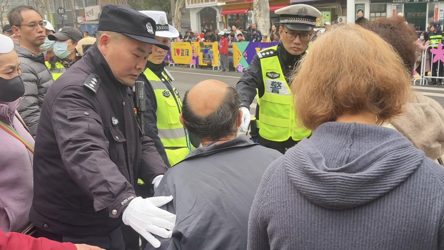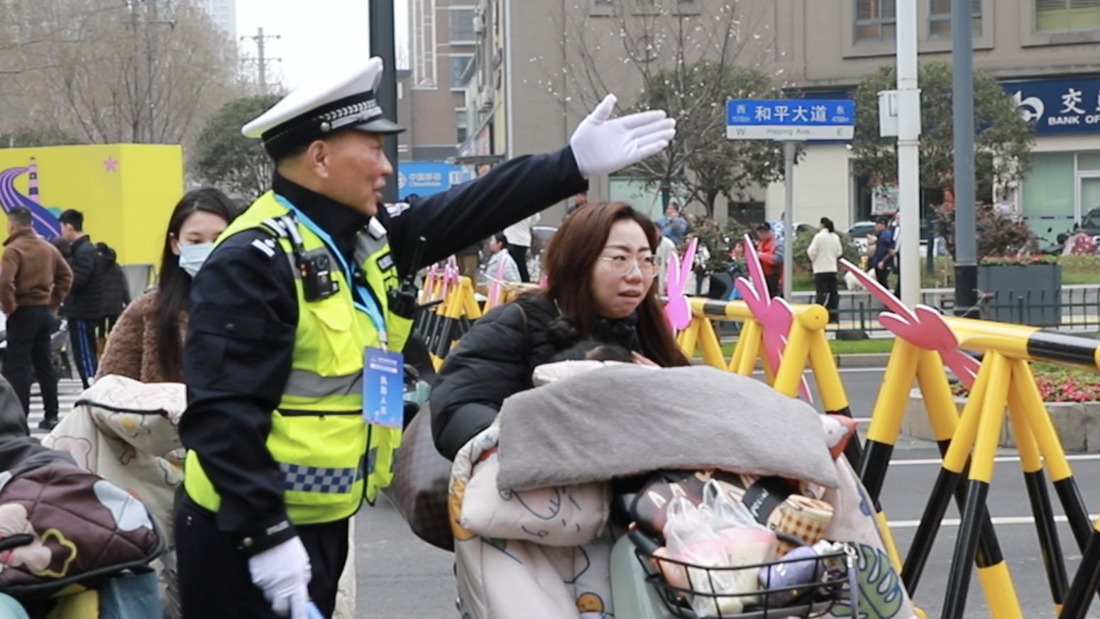 “爹爹,您跟着我,我带着您过马路。”上午9时,青山赛段正式实施道路管控,发现一名腿部残疾的爹爹在人流中蹒跚行走,新沟桥街派出所执勤民警邵奇立即上前搀扶,暖心护送其通过“岛式穿越”平安过街。