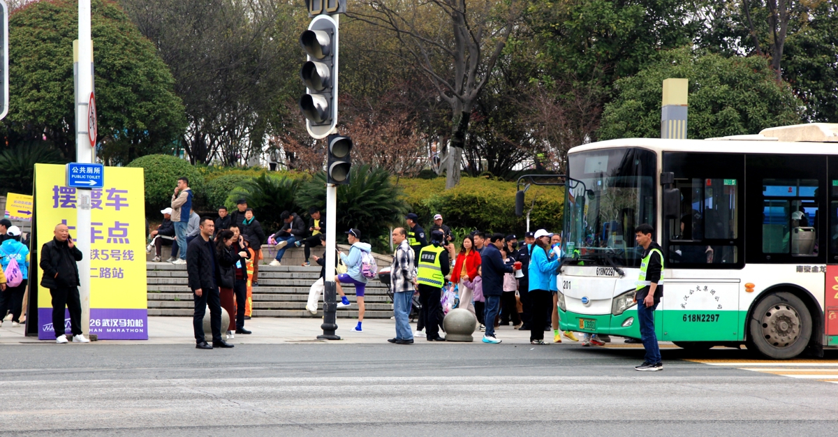 青山区城管局相关负责人介绍,为切实做好赛事交通保障工作,确保赛后选手疏散有序、顺畅,区城管局联合公交六公司制定专项疏散摆渡方案,共调配30辆公交车,组建汉马疏散摆渡专线。在运力部署上,开通了两条定点接驳线路,分别衔接和平大道建设二路地铁站与和平大道园林路科普公园站,实现赛事终点与轨道交通、城市路网的快速接驳。在服务保障上,建立“延时兜底”机制,将运营服务时间延长至14:30,确保参赛选手无一人滞留。此次保障任务累计发车256台次,安全运送参赛选手及工作人员12800余人次。