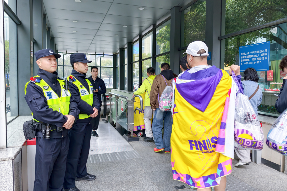 3月22日,2026武汉马拉松鸣枪开跑。距离半马终点的楚河汉街地铁站,当天迎来客流高峰,武汉市公安局轨道交通管理分局增派警力到该站,全力守护站点安全与出行秩序。