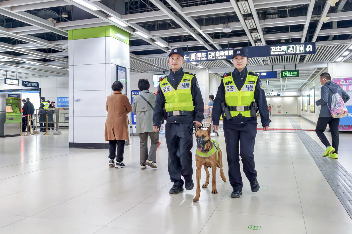 当天中午,新闻记者现场看到,半马结束后,大量的选手从这里搭乘地铁离开,在现场执勤的轨道民辅警,有的在携警犬巡逻,有的在给选手指路,有的主动帮携带大件行李的旅客搭把手,现场秩序井然。