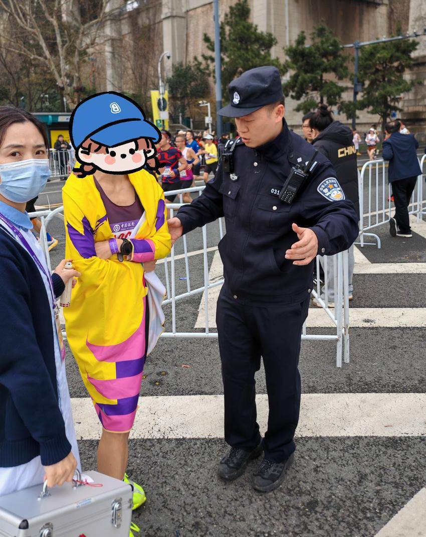“有选手蹲下了,快去看看情况!”上午10时许,在汉阳门码头附近,一名选手不慎崴脚。中南路派出所民警万方发现后,立即上前引导其移至赛道边,在确保赛道通畅的同时,迅速启动现场联合救治机制,确保选手得到周全的照顾。