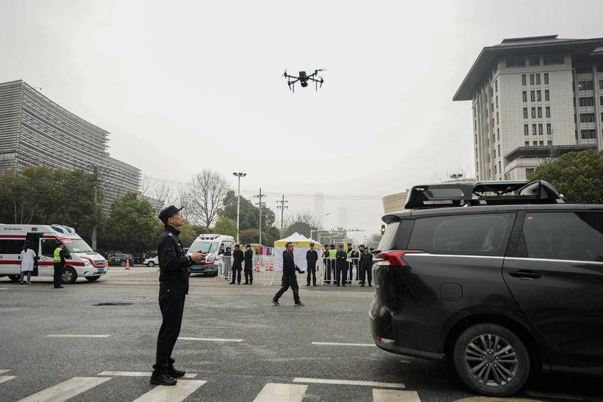 “警用无人机升空,画面同步接入情报指挥中心!”早上6时,分局大数据分中心在半程马拉松终点书卷路,启用车载警用无人机机巢。空中“鹰眼”持续巡航,将实时画面回传指挥部,配合地面警力完善周边封控与车辆引导,为赛道安全扫除隐患。