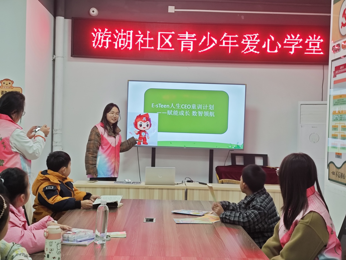 课前,孩子们提前收集整理植树节相关知识,课堂上踊跃分享树木与自然的故事,一个个生动有趣的自然知识,让“绿水青山就是金山银山”的理念深深烙印在孩子们心中。随后,在志愿者主讲人的带领下,正式启动“E-sTeen人生CEO童训计划”,以数智赋能成长,为课堂注入全新活力。