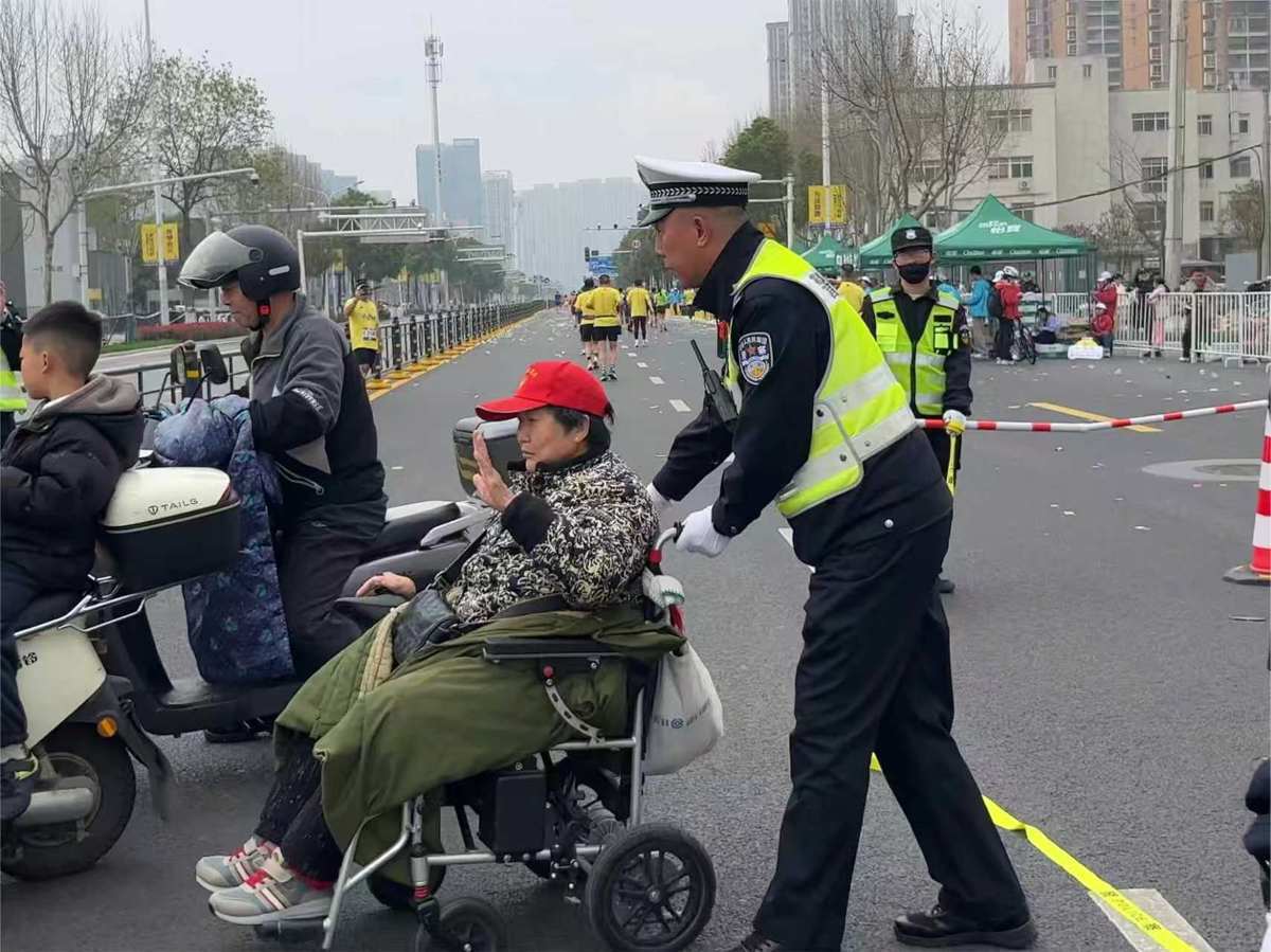 赛事进行期间,黄鹤楼南路作为核心管控路段,交通管制给居民出行带来不便。武昌区分局交通管理大队不仅提前为附近小区规划绕行路线,更暖心救助了一位迷路老人。87岁老人因思念女儿独自外出,却在道路封控中迷失于解放路与张之洞路口。交警刘五桥发现后,立即安排辅警李权护送,途经核心管控区时,执勤交警高梓健、王少军、姜凡上前接力协助,众人一路守护,将老人安全送至大成路其女儿家中。