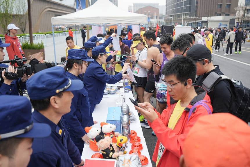 完赛后,一位女性跑者路过消防宣传展台,被热闹的有奖问答吸引住了。“现场好多选手和市民都在参与,气氛特别热烈。”她笑着说,原本只是抱着试试看的心态参与,没想到答了满分,还赢得了一个可爱的消防主题玩偶。“收获真不小。”她举起手中的玩偶,语气里满是笑意,“我以前也会把电动自行车推到楼道里充电,通过这次问答才意识到危害,想想还有些后怕。希望这样的活动能多办一些,让更多人有机会了解消防知识,一起把安全意识提上来。”