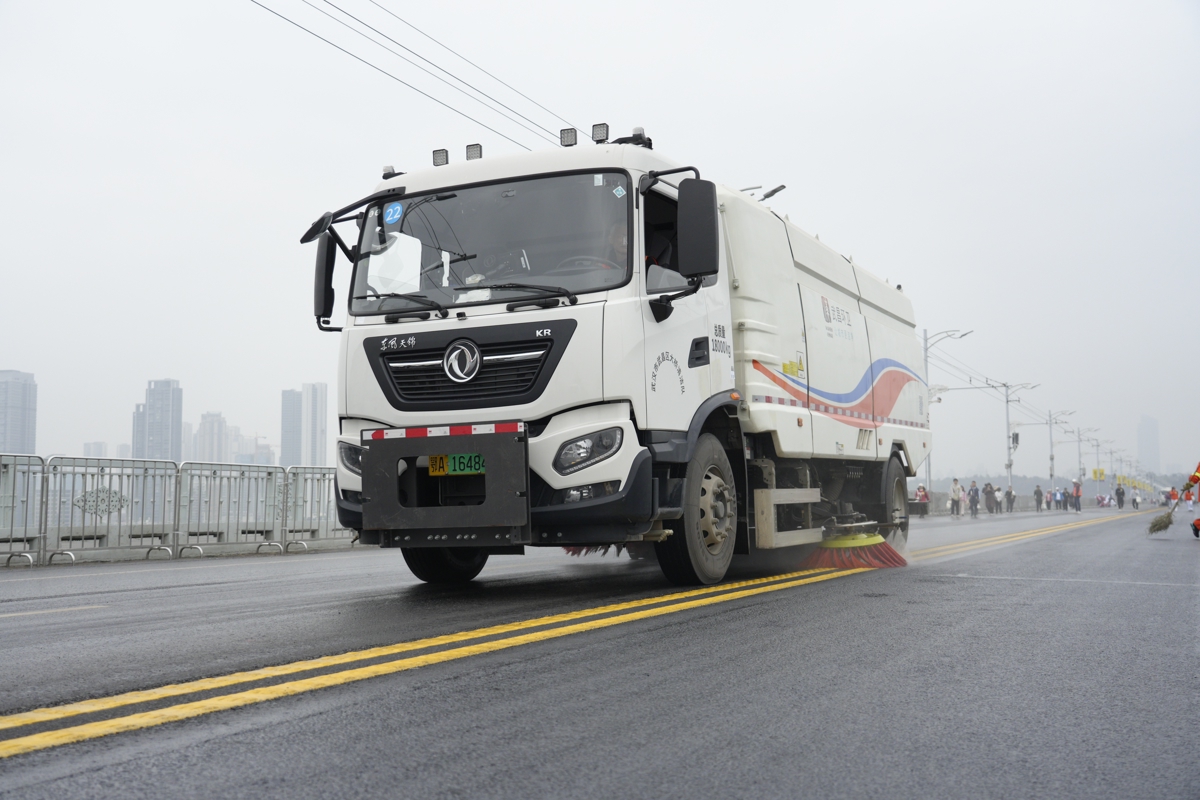 为此,武昌城管大桥清洁队、二桥清洁队延长保洁作业时间,与往年约10点恢复通车情况不同,两个清洁队的环卫保障人员连续在岗与动态保洁时长增加了1小时左右,在长江大桥、临江大道等点位保障直至徒步定向游活动结束。