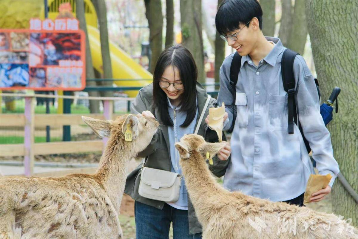 此次赏樱季,园区打造了全时段、多维度的赏樱体验,满足不同游客的游玩需求。白天,游客可踏上空中赏花栈道,以全新视角俯瞰整片樱花园,将层层叠叠、错落有致的樱花盛景尽收眼底,实现多层次、立体化赏樱。夜幕降临,园内灯光秀璀璨启幕,以楚文化为核心的“凤舞九天”惊艳亮相,光影流转间与樱花交织,勾勒出梦幻绝伦的夜景;西区的投影动画童趣满满,成为小朋友们的春日梦幻乐园;樱花牧场里,温顺的小鹿漫步其间,与烂漫樱花相映,增添了别样的灵动与治愈。