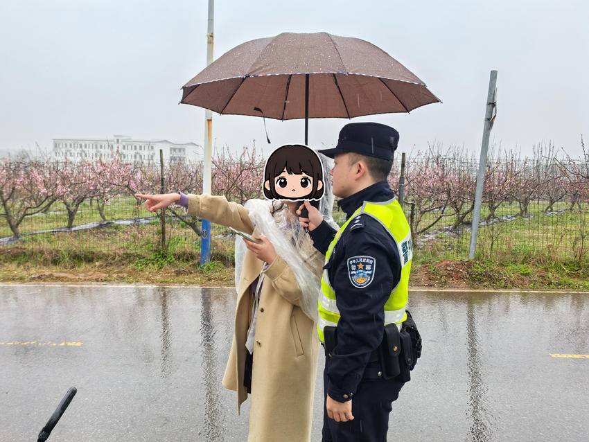 雨幕中,暖心服务从未缺席。安山派出所民警辅警穿梭在人群里、花海中,化身群众的“贴心人”。“民警同志,徒步起点怎么走呀?”“打卡点在哪里?”面对络绎不绝的咨询,民警辅警耐心解答、雨中引路,清晰指明路线、补给站、卫生间等位置,让群众赏樱不迷路、游玩更舒心。看到现场小吃摊主扛着食材、搬着桌椅忙得满头大汗,民警李青青主动上前搭把手:“老板,我来帮您!”说着便拎起一袋食材、帮忙摆好桌椅,摊主连声道谢:“下着雨,多亏你们了。”