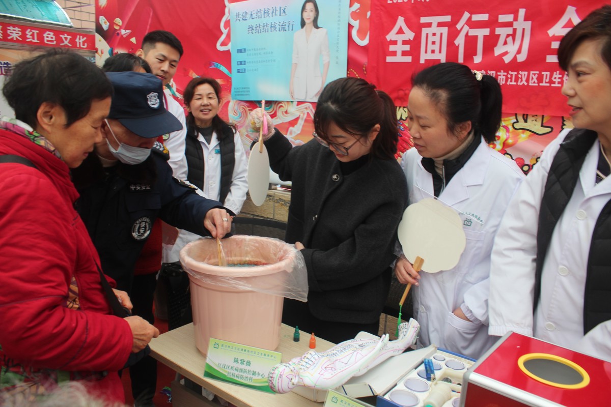 3月19日,武汉市江汉区勤劳社区百姓大舞台前人头攒动,一场以“全面行动,全力投入,全民参与,终结结核”为主题的大型健康义诊活动在此火热启幕。江汉区满春街社区卫生服务中心家庭医生团队携手江汉区卫生健康局、江汉区疾病预防控制中心及医联体武汉市第一医院呼吸科专家,打破传统义诊模式,将优质医疗资源与非遗文化巧妙嫁接,为辖区居民烹制了一道有温度、有深度的“健康大餐”。