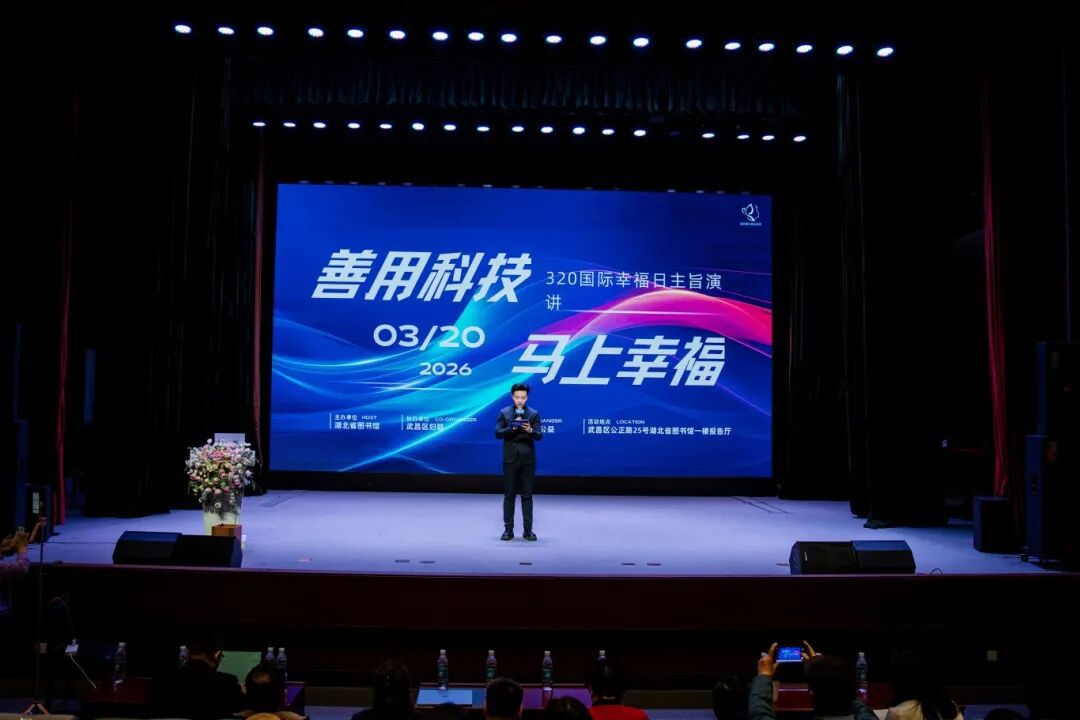3月20日,湖北省图书馆一楼长江报告厅内暖意融融,“320国际幸福日·善用科技马上幸福论坛暨最美她力量公益荟1周年庆典”在此举办,近600名科技先锋、“幸福引路人”与各界嘉宾齐聚一堂,共同探讨科技赋能下的幸福密码。