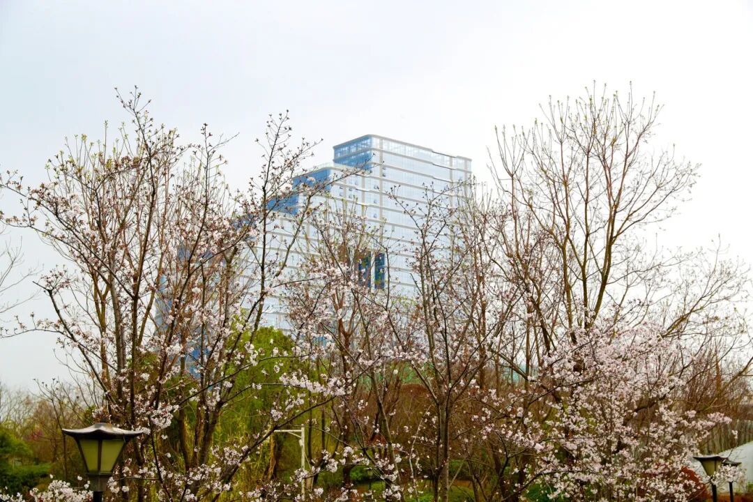 东南角的樱花与垂丝海棠、紫荆等交相辉映,在小桥流水的意境中温润如玉。珞狮路沿线的海棠花廊“香雪如浪”,是春日最惬意的画面。
