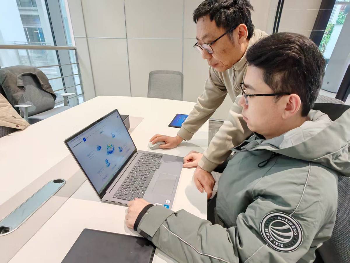3月17日,中数服公司,古伟与同事研讨业务。(湖北日报全媒记者 戴文辉 摄)