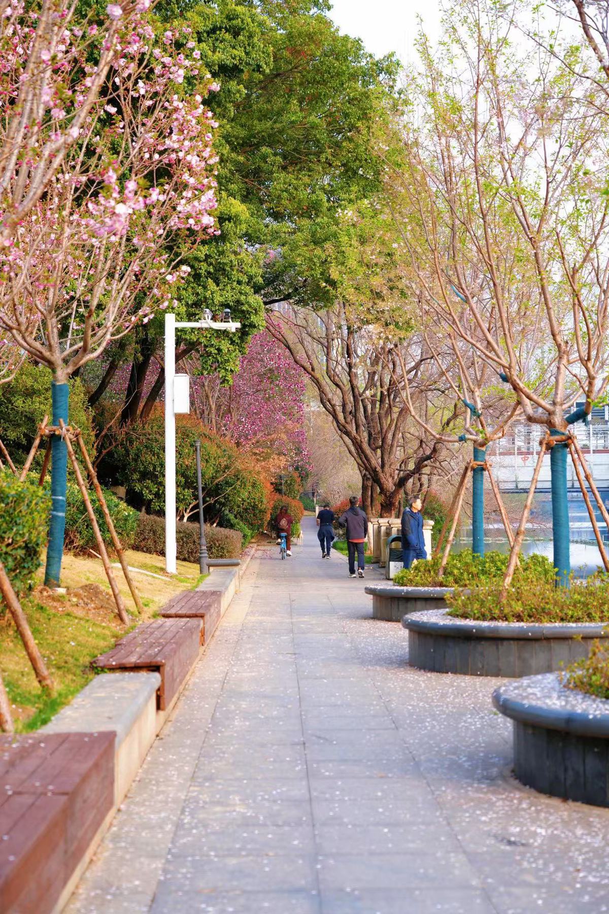 如今,楚河北岸赏樱廊道,实现了逛街与赏樱的自然融合,亲子漫步、市民打卡,春日美景已然融入城市日常,不仅丰富了周边居民休闲场景,更通过水质改善、绿化提升、优化居住环境、净化空气,切实提升了居民的生活获得感与幸福感。