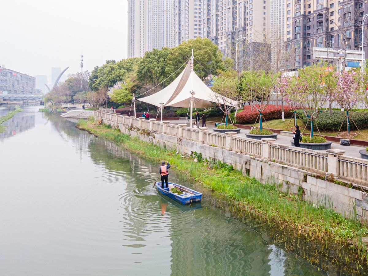 武昌水务部门重点聚焦楚河SKP段,持续改善楚河水环境景观品质。水中水下森林,肉眼可见。天天有人清漂水草垃圾、提升围格生态度,铺设四季常绿铜钱草,补种再力花、美人蕉、角堇、苦草、黑藻等植物,更换3个新式生态浮岛,并在浮岛上栽设鸢尾和郁金香,搭配3个灯光曝气机,全力打造美丽水域环境,与岸边樱花相互映衬,构成水清岸绿、花美景幽的生态画卷。