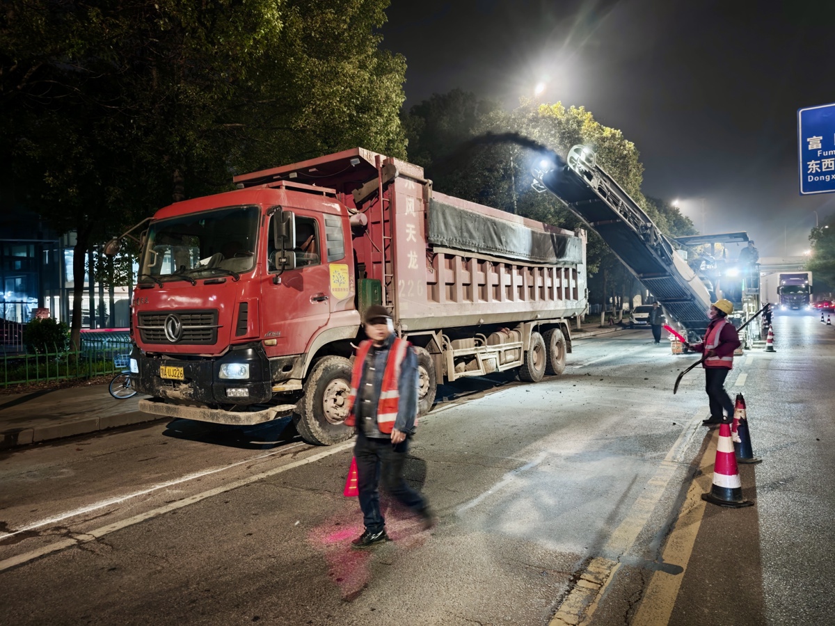 “考虑到3、4月份雨水多,我们抢在晴天晚上的窗口期抓紧施工。”东西湖区城管执法局市政公用服务中心相关负责人介绍。雨天施工容易软化路基、降低沥青粘结力,若白天占道作业又会影响市民正常出行。为此,他们调整工作思路,确定“白天保通行、夜间抢工期”的错峰方案,利用车流减少、天气相对稳定的夜间有利时段抓紧作业,最大限度减少对市民出行的影响。