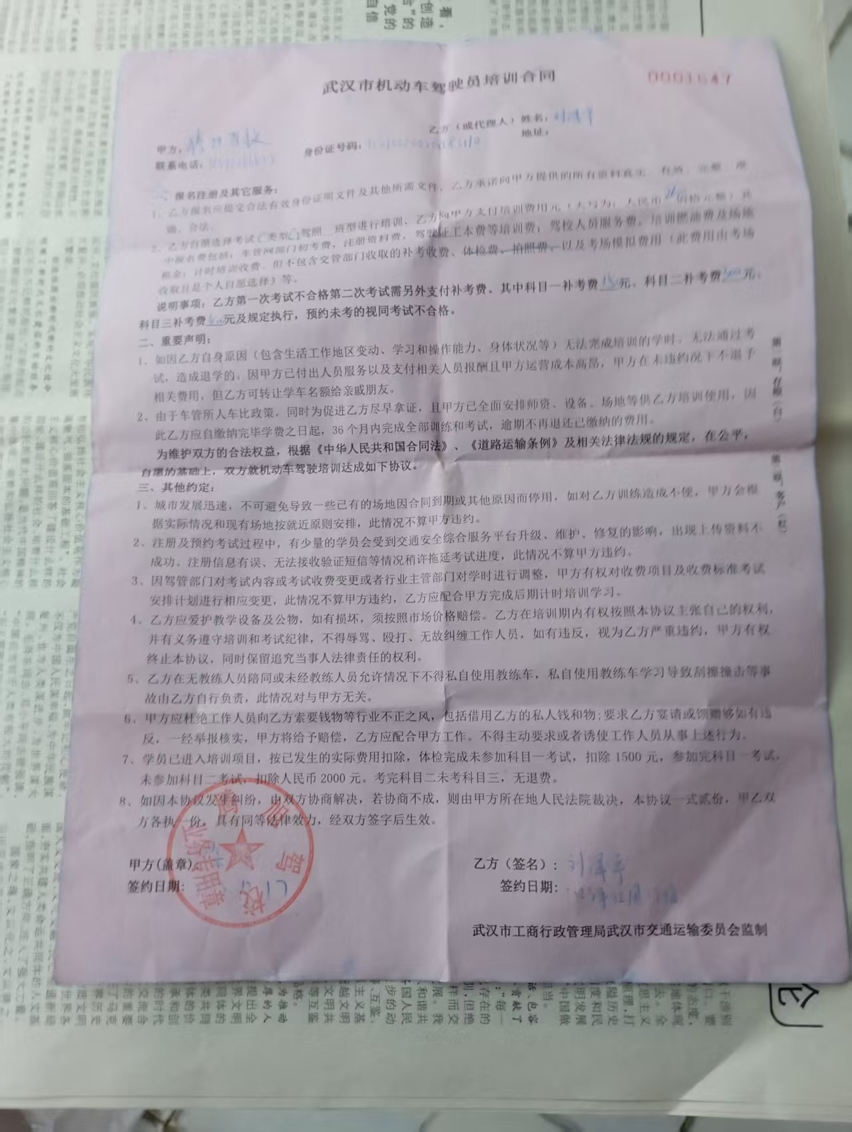 驾校方面则表示,依据合同约定,乙方违约退还70%的培训费用。