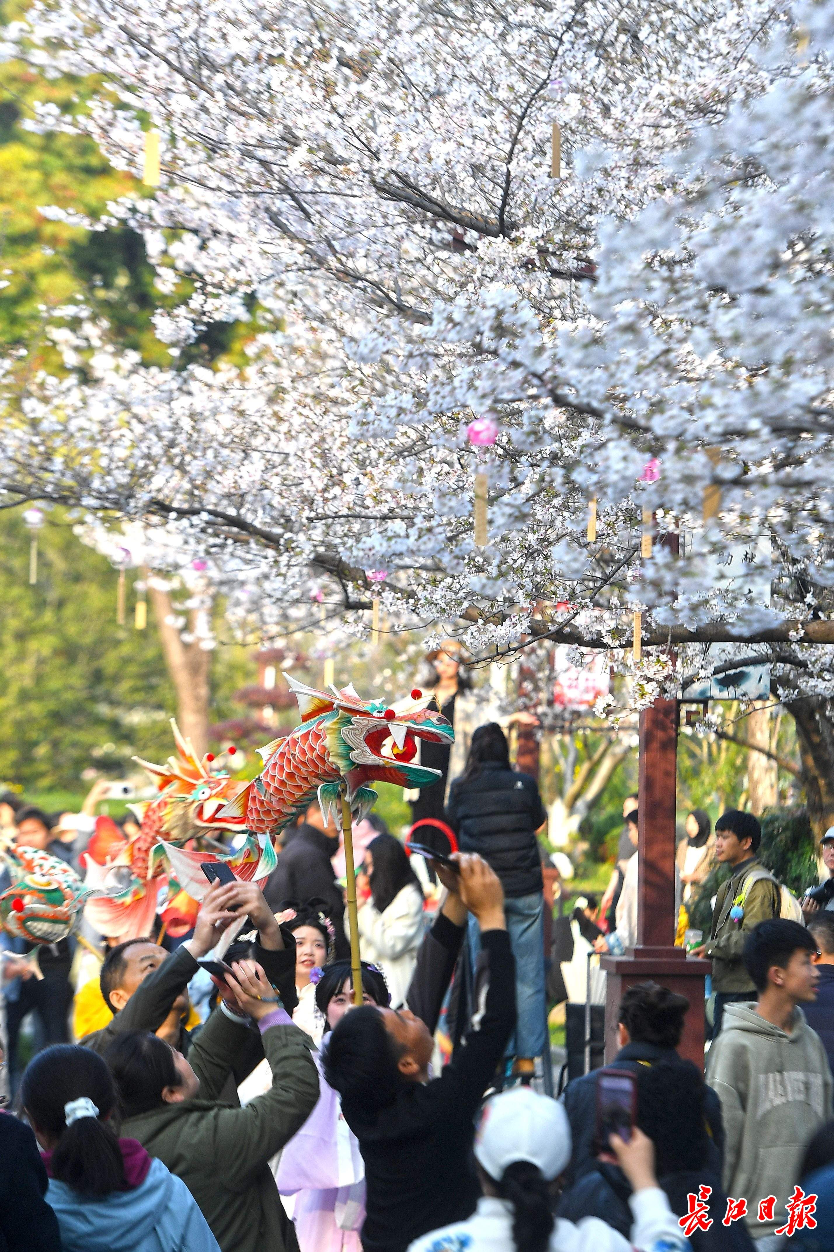 “顶流”选手拼的是气场和底蕴。东湖樱花园是世界三大赏樱胜地之一,今年新辟中国本土樱花展示区,迎春樱、华中樱、尾叶樱等原生品种次第亮相。知音文化旅游区是近年来崛起的赏樱新贵,坐拥“樱花与长江大桥同框”的顶级视野,是摄影爱好者的必争之地。今年3月,坐落其中的龟山成为最热门的赏樱景区。“第一次看到龟山有这么多人来赏花”,在龟山工作的艾米丽感叹。