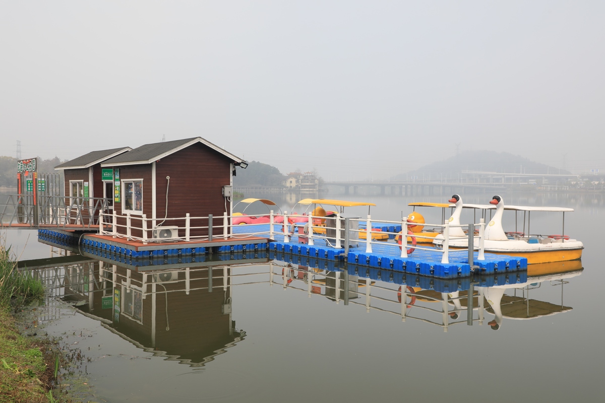 3月25日中午时分,清清的龙阳湖边,10只游船一字排开,有电动的,也有脚蹬的。工作人员说,到了周末,这些船供不应求。这时,从东西两侧接现有公园的绿道上,骑行的、徒步健身的,络绎不绝。湖畔草坪上,刚学会走路的孩童,开心地玩耍。