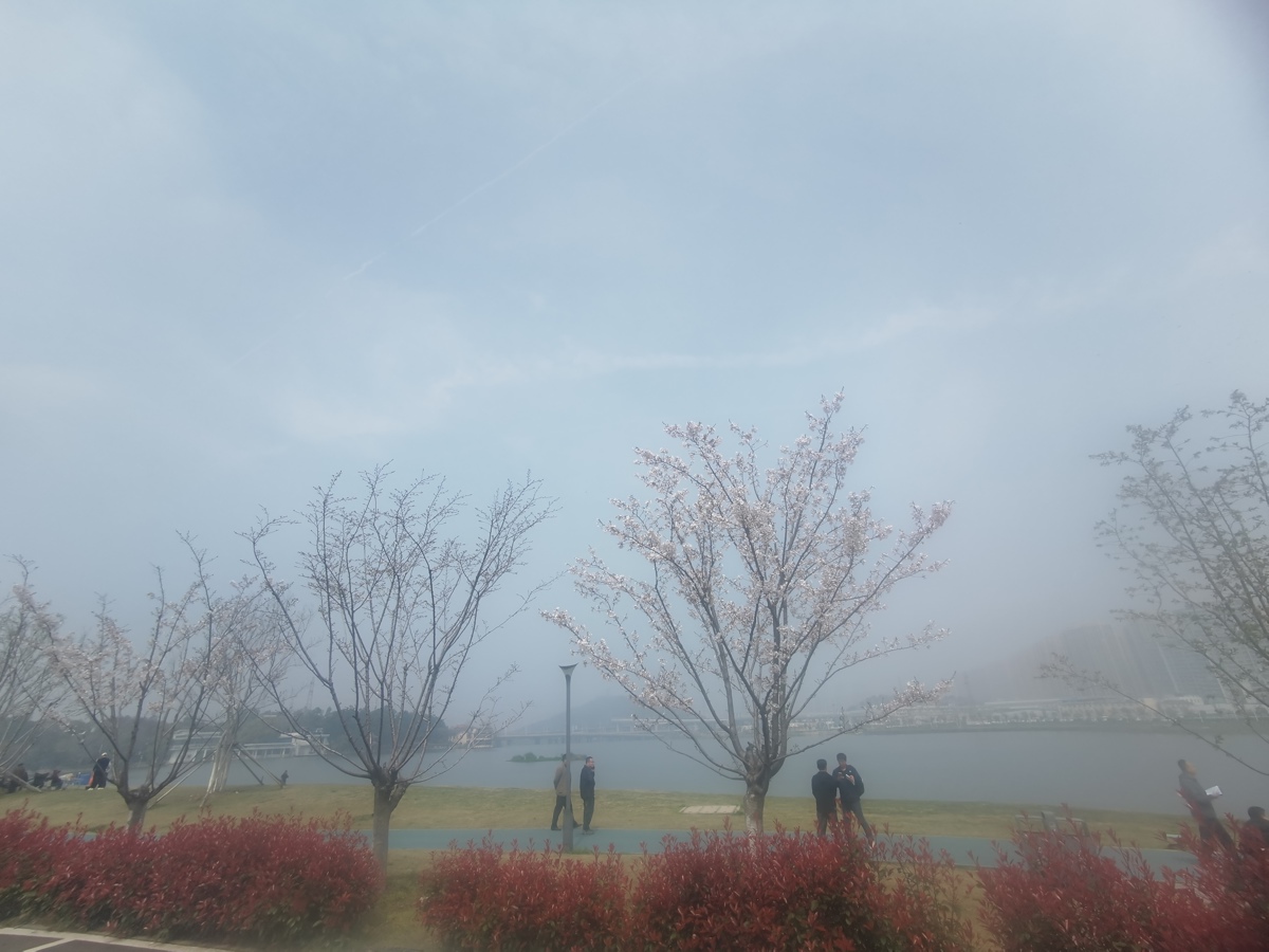 龙阳湖畔的草坪和植被,连着湖水,工作人员说,周末和节假日,不少市民前来搭帐篷,三五成群聚会,享受着春光无限好。