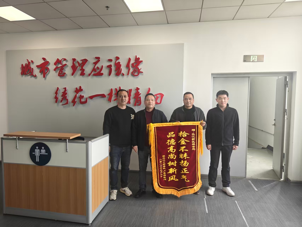 长江新区城管执法局绿化养护员,在作业时捡到一个装有现金和手机的手提包,在原地等了一个小时后,终于等来了失主。3月24日,失主卢婆婆的家人给拾金不昧的绿化养护员谌义送来锦旗,以表达谢意。