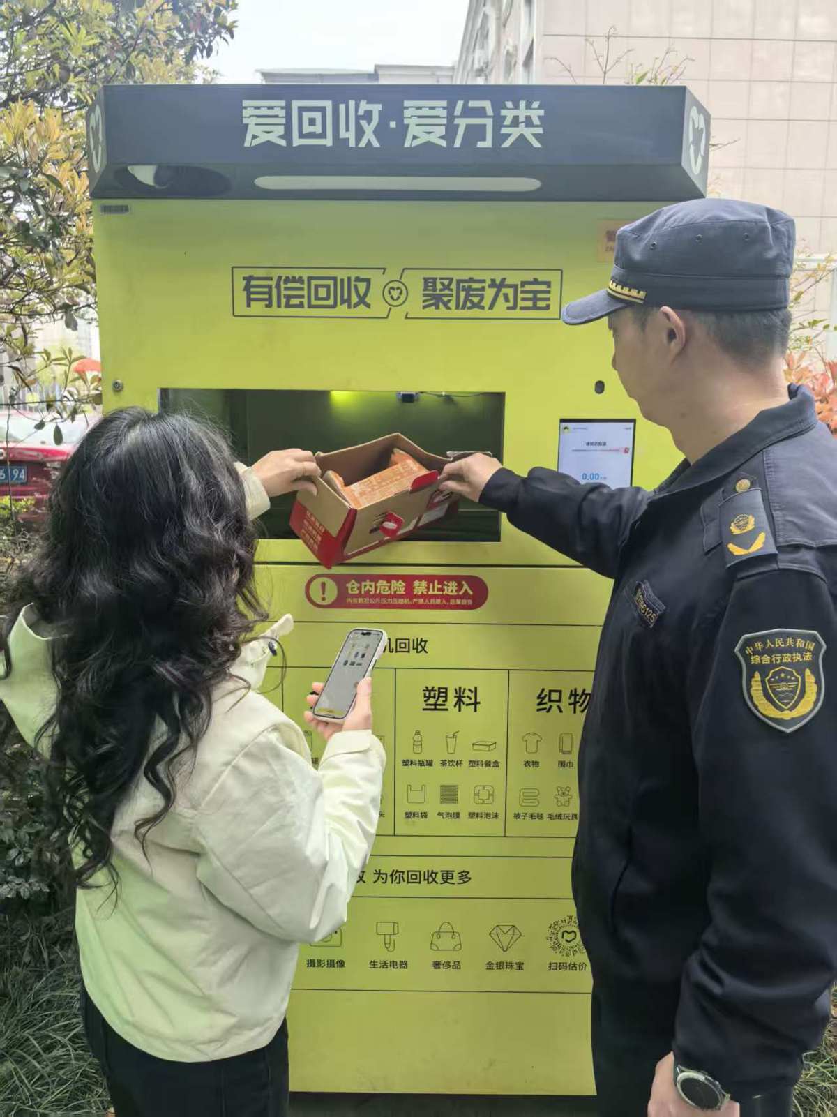 沌口街综合执法中心相关负责人表示,此次推广的智能回收箱不仅是便民举措,更是“城市管理进社区”的生动体现。设备后台能实时监控满溢情况,及时安排清运,避免“满箱没人收”的尴尬。同时,通过数字化监管,可回收物会被精准分拣、送往再生企业,真正实现“废品变宝”。目前,首批新增设备已在部分小区安装调试。后续,综合执法中心将结合各小区实际入住情况和居民投放需求,动态调整设备点位,让“卖废品”这件事,真正变成下楼就能完成的“顺手事”。