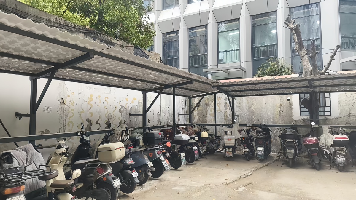 不久之前,这处设有便民停车棚的地方,还是一处杂乱的违法建筑。30多平方米的公共场地被私自搭建的棚屋占据,让本就狭窄的公共空间更加拥挤。长期堆放的杂物不仅让周边环境杂乱不堪,还堵塞通行通道,埋下消防安全隐患,成为困扰小区居民的一桩烦心事。