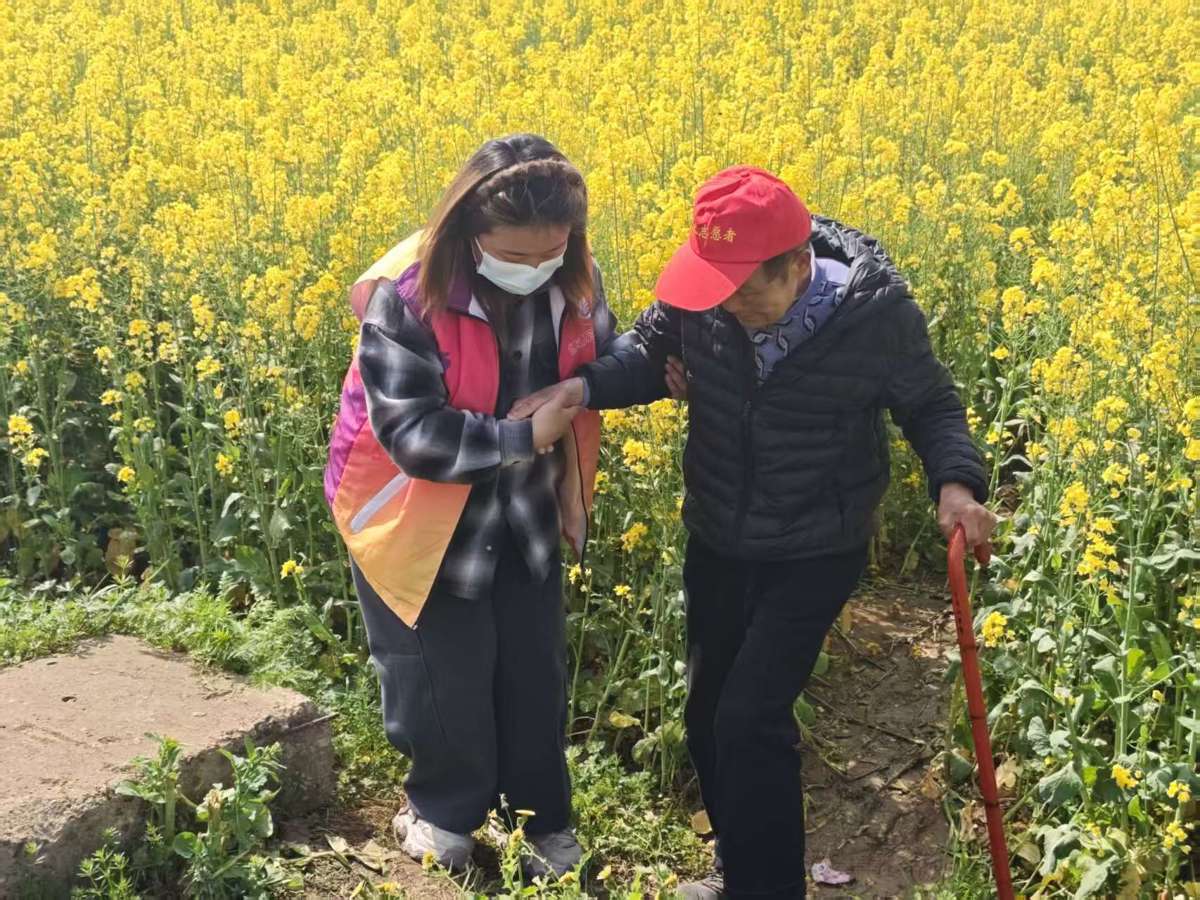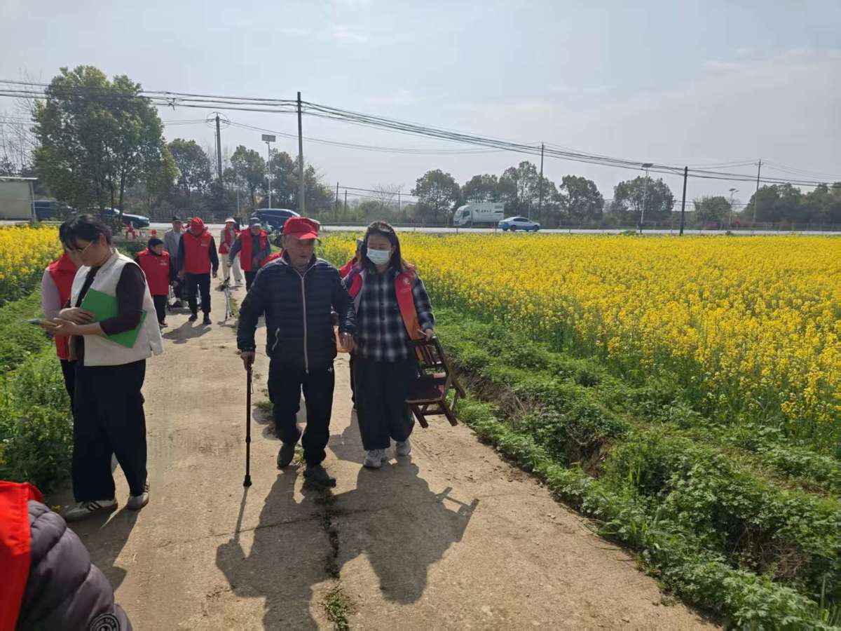 春风拂过,花海漫卷。活动伊始,工作人员与志愿者们全程搀扶、细心陪护,陪着老人们缓缓漫步在四合村的油菜花田旁。金黄的花穗随风轻摇,清甜的花香萦绕鼻尖,老人们放慢脚步、驻足凝望,或闭目感受春日气息,或与身旁同伴闲话家常、笑意满盈。志愿者们寸步不离,细心照料老人们的出行安全,耐心倾听他们的心声,用最朴实的陪伴,温暖着每一位老人的心房,让老人们在自然美景中卸下疲惫、感受春日生机与美好。