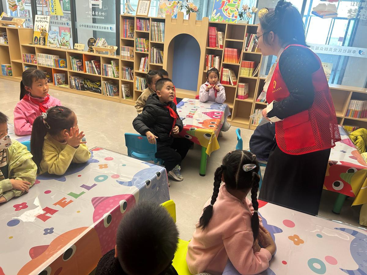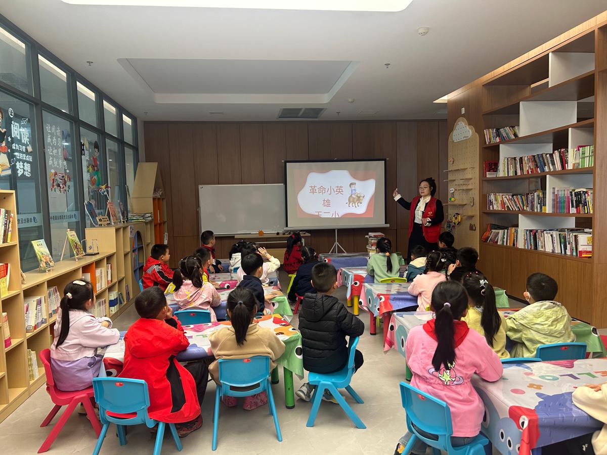 讲完传统习俗后,志愿者翻开红色绘本,声情并茂地讲述小英雄王二小的故事,把战火年代里小英雄的机智勇敢娓娓道来。孩子们坐得笔直,目不转睛地盯着绘本,听得十分入神,脸上满是崇敬。故事结束后,孩子们纷纷开口,用稚嫩的话语,表达对革命先烈的尊敬与怀念。