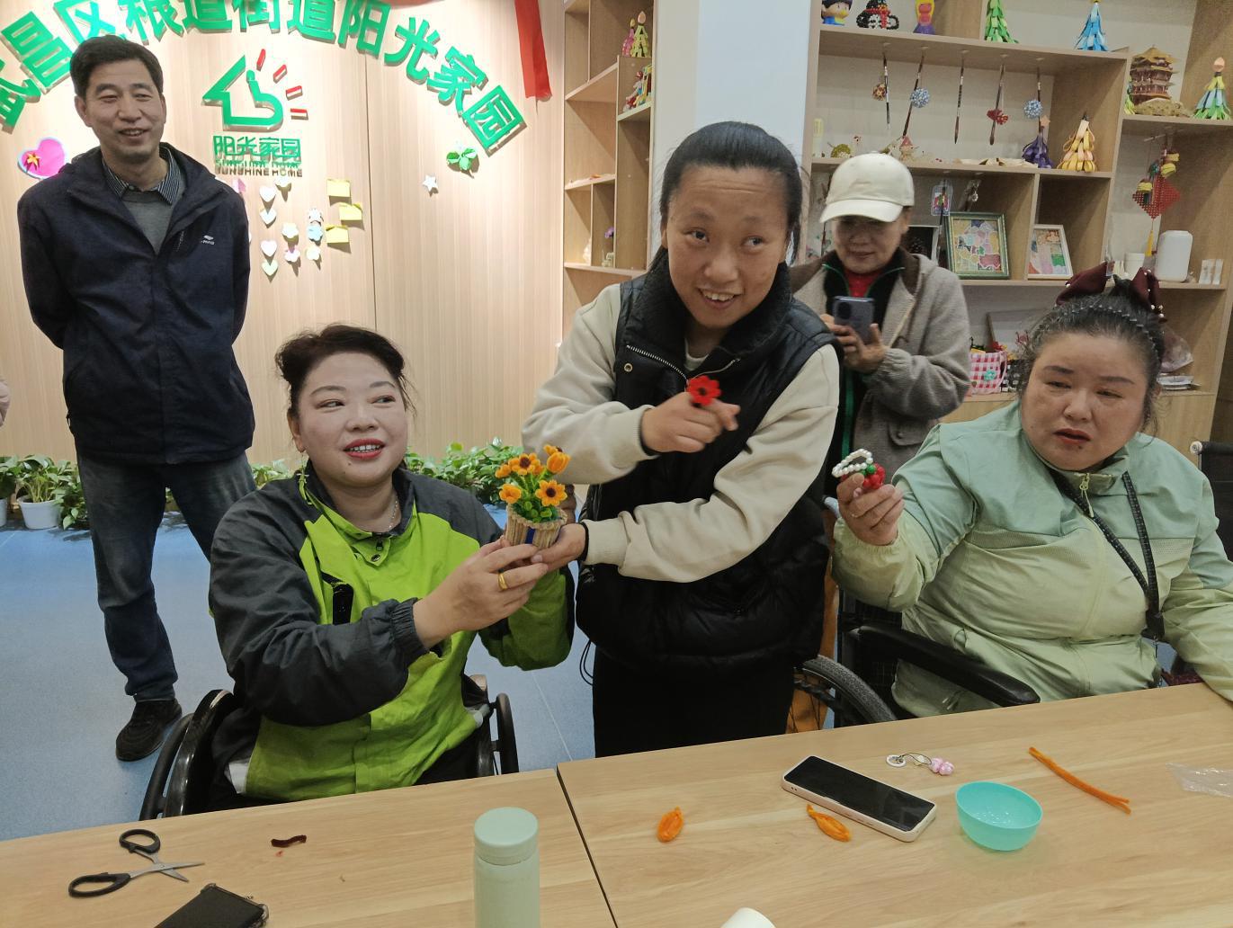 活动尾声,爱之翼队员与粮道街阳光家园学员,互赠一件件小巧精致的手工花、串珠作品。不仅承载着大家的巧思与心血,更见证了残友之间互帮互助、携手共进的深厚情谊,赢得了现场阵阵赞叹。