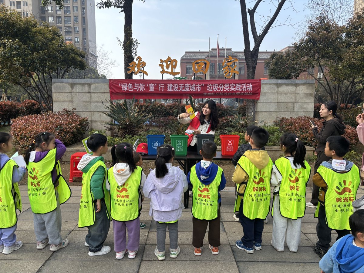 为深入推进“无废”城市建设,普及垃圾分类知识,将绿色环保理念植根于童心,3月27日,武汉经开区沌口街道观澜社区新时代文明实践站联合阳光花康悦幼儿园开展了一场“绿色与你‘童’行 共建无废城市”的垃圾分类主题活动。活动依托社区“澜事有我”工作机制,让孩子们化身“澜小净”小卫士,在垃圾分类的活动中,学习、实践,掀起社区环保新浪潮。