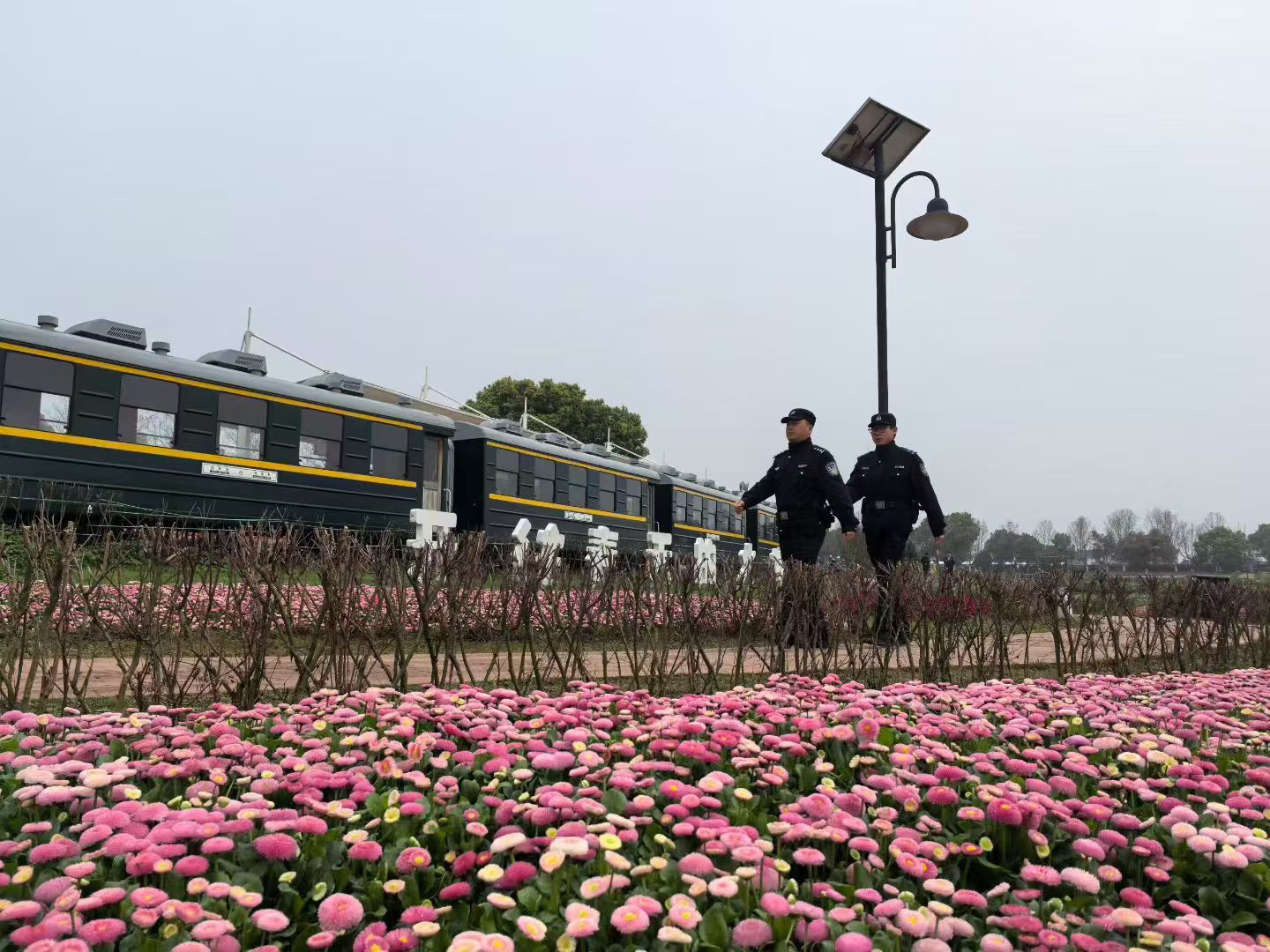 针对花博汇景区面积广、打卡点分散、客流波动大的特点,大集街派出所推行“动态布警、精准防控”模式,高峰时段在核心花海、儿童游乐区等地增派警力驻守,做到“警力跟着客流走、防控围着现场转”,让平安守护始终与游客同行。