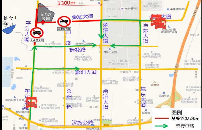 清明节期间7:00-16:00,金发大道(平江大道至余泊大道段)、平江大道(青花路至金发大道)禁止大中型货车通行。