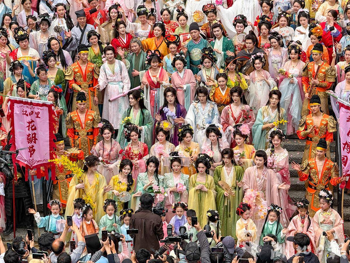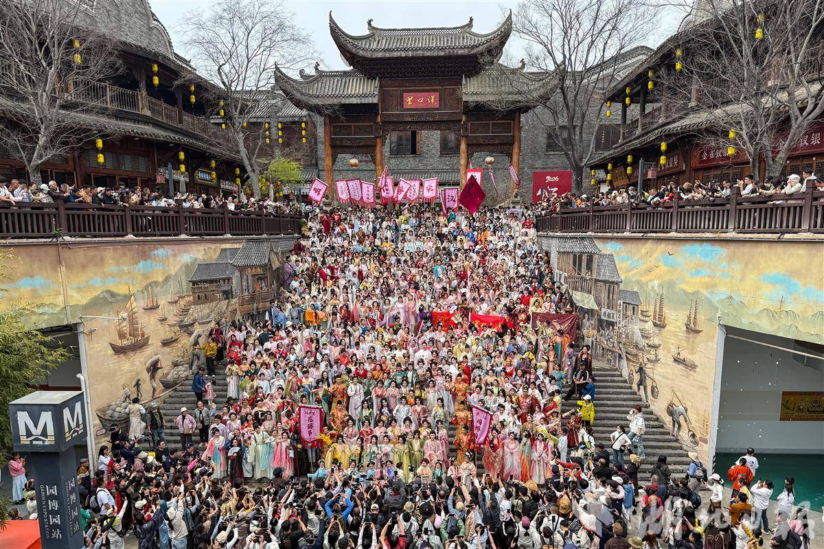 2026年3月28日,武汉园博园第七届汉口里花朝节正式启幕,3000余名汉服爱好者身着华裳齐聚园区,共赴春日国风盛宴。