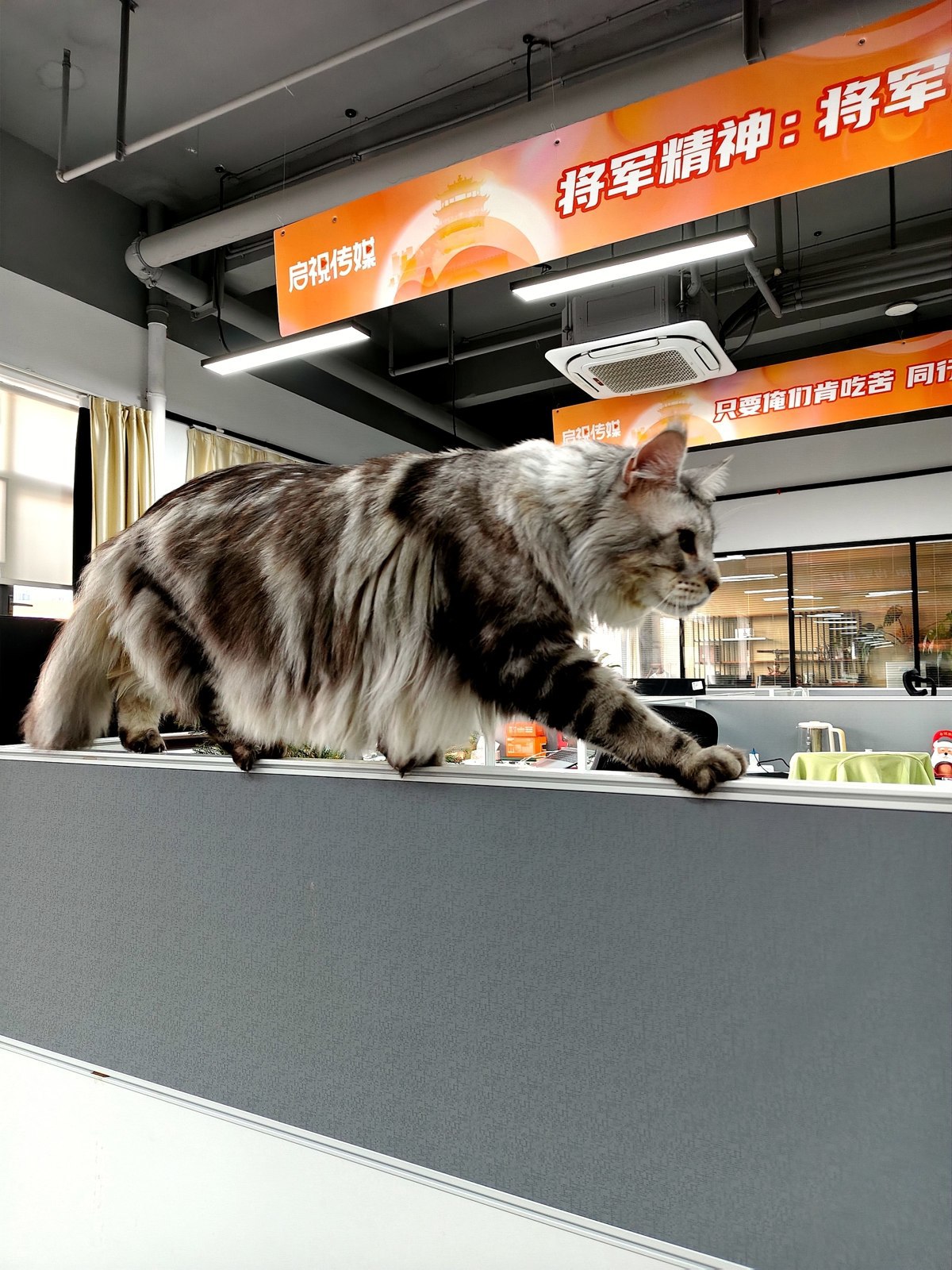 近日,记者在武汉头部家电直播电商平台启视传媒的办公区看到,几只毛茸茸的身影悠闲地穿梭其间,一点都不怕生。有的猫咪专在写字间隔板上散步,有的蜷在电脑旁安静地看着主人敲键盘。