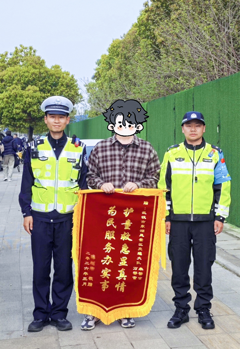 一面锦旗,一份认可;一句感谢,一片温情。3月29日,恰逢周末踏春高峰,武汉东湖风景区鲁磨路桥梁村路口车流、人流密集,东湖交通管理大队二中队民警朱子雄正坚守执勤岗位疏导交通,被其紧急救助的孩童家长专程赶来,送上锦旗表达深深谢意,用最朴素的方式,诉说着警民同心的温暖故事。