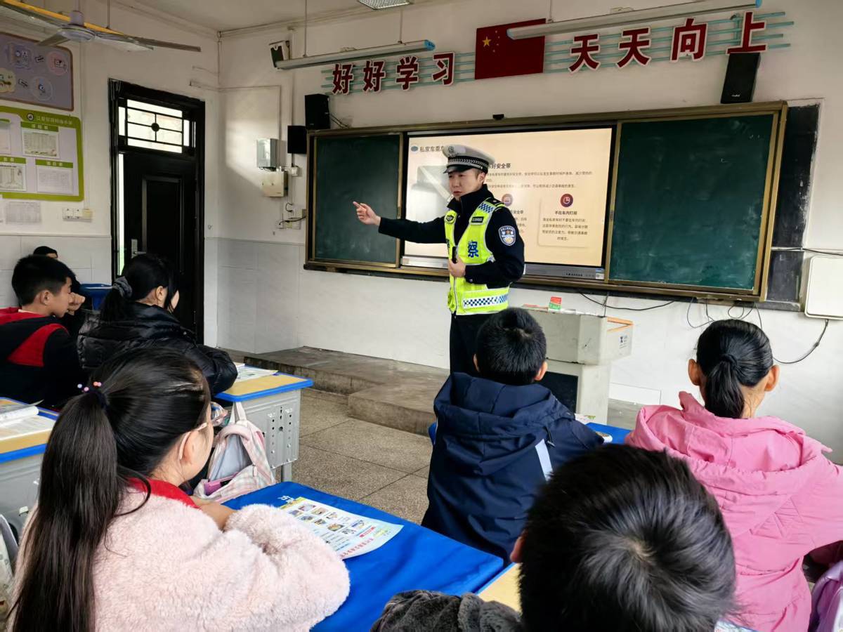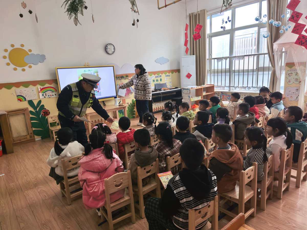 此外,民警们还分别走进安山小学、法泗小学、舒安小学及湖泗幼儿园,针对小学生和幼儿的认知特点,通过趣味讲解、儿歌传唱、播放《交通安全微课堂》动画片等适合低龄群体的方式,普及交通安全基础知识。向他们讲解日常步行、骑行的安全要点,提醒他们不横穿马路、不翻越护栏;向幼儿园小朋友传授简单的交通信号识别方法,引导他们从小树立“遵守交通规则、珍爱生命安全”的理念,让交通安全种子在孩子们心中生根发芽。