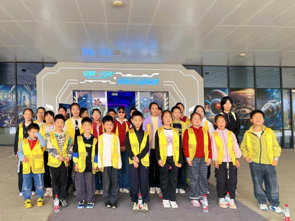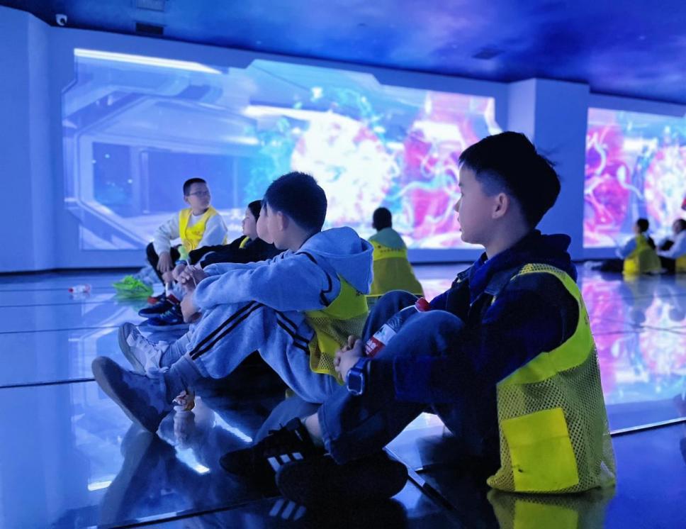 随后,大家来到文明一万年·智能社会体验馆,在CAVE沉浸式空间中观看“初心计划”影像,数字人“小北”与“小武”引领小朋友穿梭古今,屏幕上银河系心脏地带的巨大星舰群熠熠生辉,虚拟与现实的多重感官交互,引得孩子们阵阵欢呼。