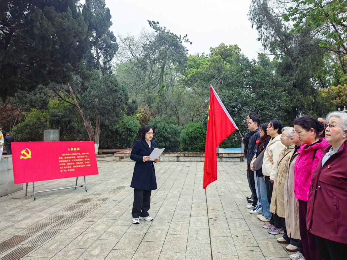 “我志愿加入中国共产党,拥护党的纲领,遵守党的章程……”在鲜红的党旗下,全体党员举起右拳,重温入党誓词。铿锵有力的誓言在陵园上空回荡,这不仅是对入党初心的回溯,更是对新时代使命担当的庄严承诺。