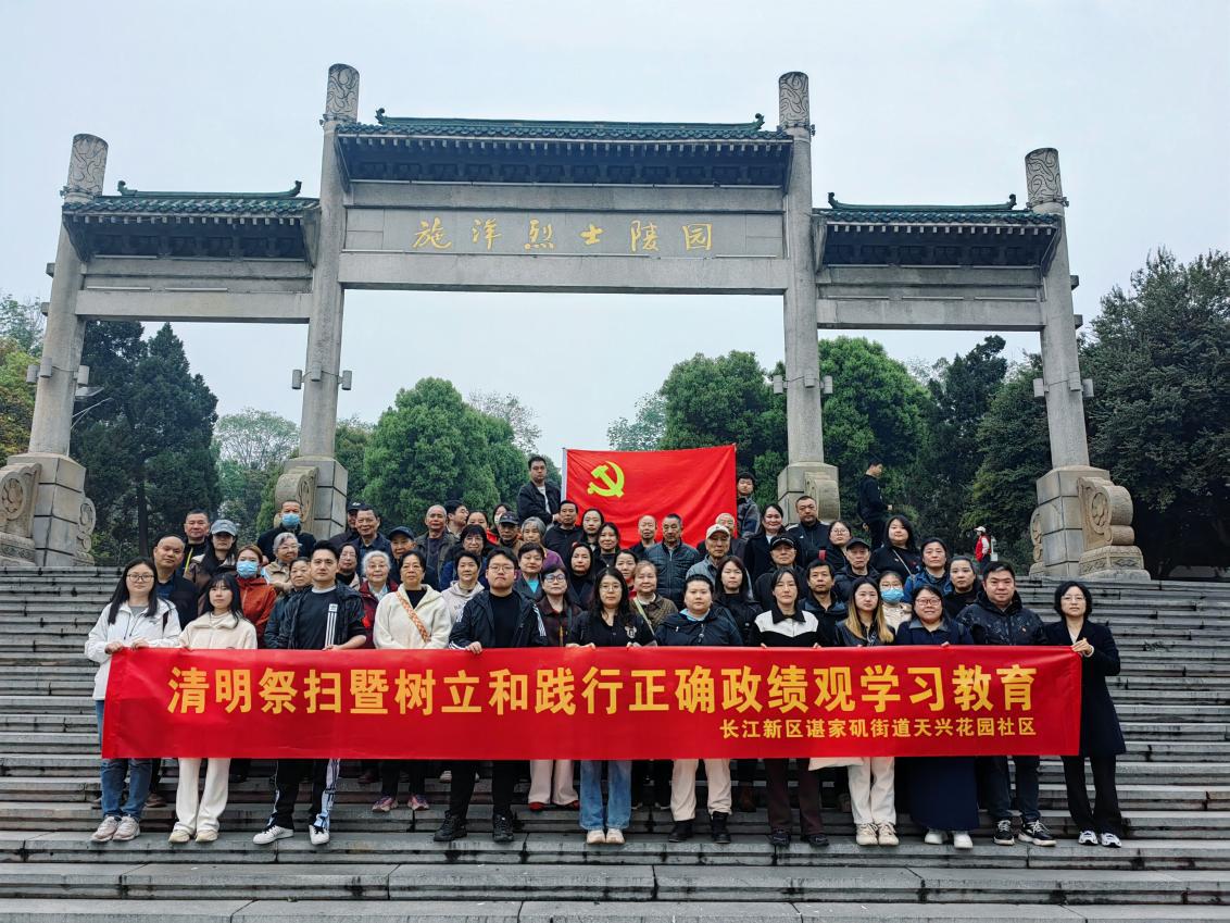 青山埋忠骨,史册载功勋。在清明节来临之际,为深切缅怀革命先烈的丰功伟绩,传承红色基因,引导广大党员群众牢固树立和践行正确政绩观,3月31日上午,武汉长江新区天兴花园社区组织党员、志愿者怀着无比崇敬的心情,前往施洋烈士陵园,开展“清明祭扫暨树立和践行正确政绩观”学习教育活动,以此寄托哀思,激励前行。