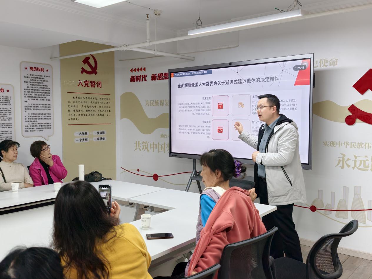 3月31日,武汉经开区沌阳街道红升社区妇联联合区工会,开展“渐进式延迟退休政策深度解读与实务操作”专题讲座,辖区职工、灵活就业人员及中老年居民等踊跃参与,让惠民政策走进群众、深入人心。