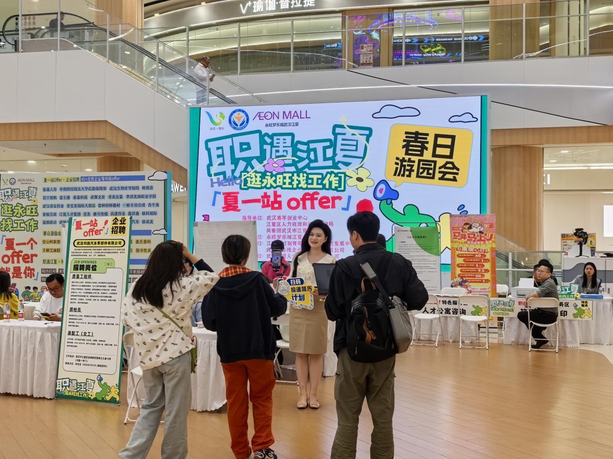 不同于传统招聘会单一、严肃的固有模式,本次活动在青年聚集、休闲消费氛围浓厚的永旺梦乐城武汉江夏,大家在逛街休闲的同时轻松求职,实现“逛街求职两不误”。