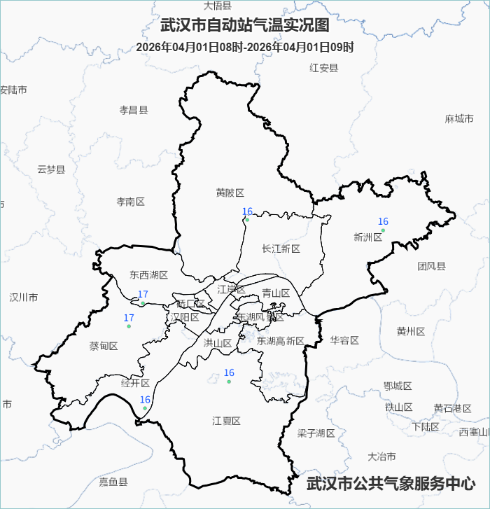 各区代表站气温来到16~17℃