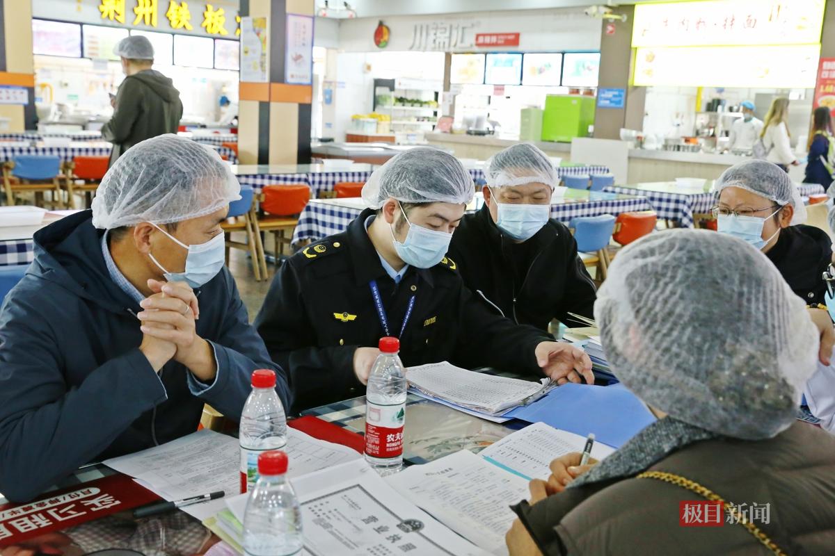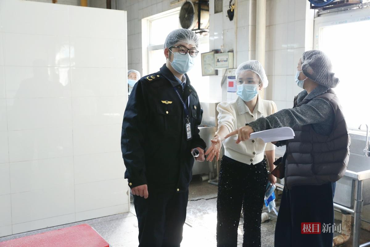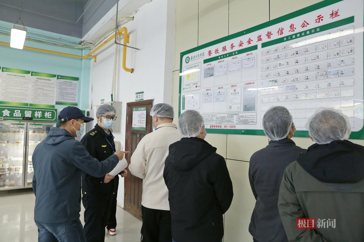 当天,几组检查人员分赴武汉工商学院、湖北中医药大学、武汉科技大学、武汉交通职业学院等学校食堂,分为“资料组”和“现场组”进行交叉检查。每一家食堂都要接受另外两所学校同行“挑刺”。而把这个“互相找茬”机制带到这里的,正是洪山区市场监督管理局青菱市场监管所副所长刘阳。