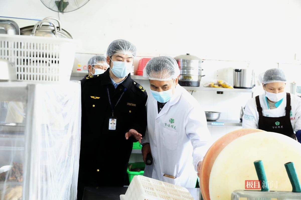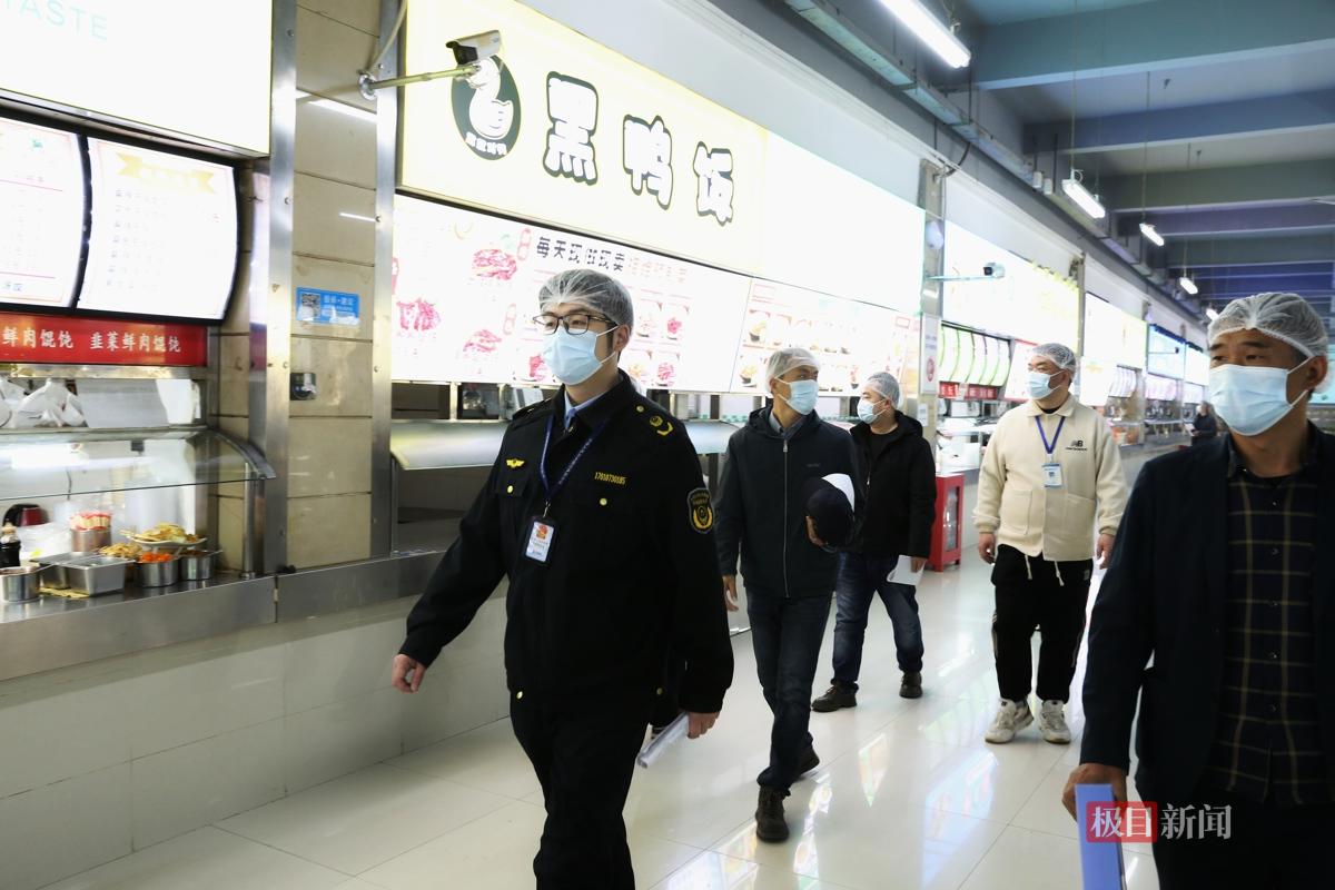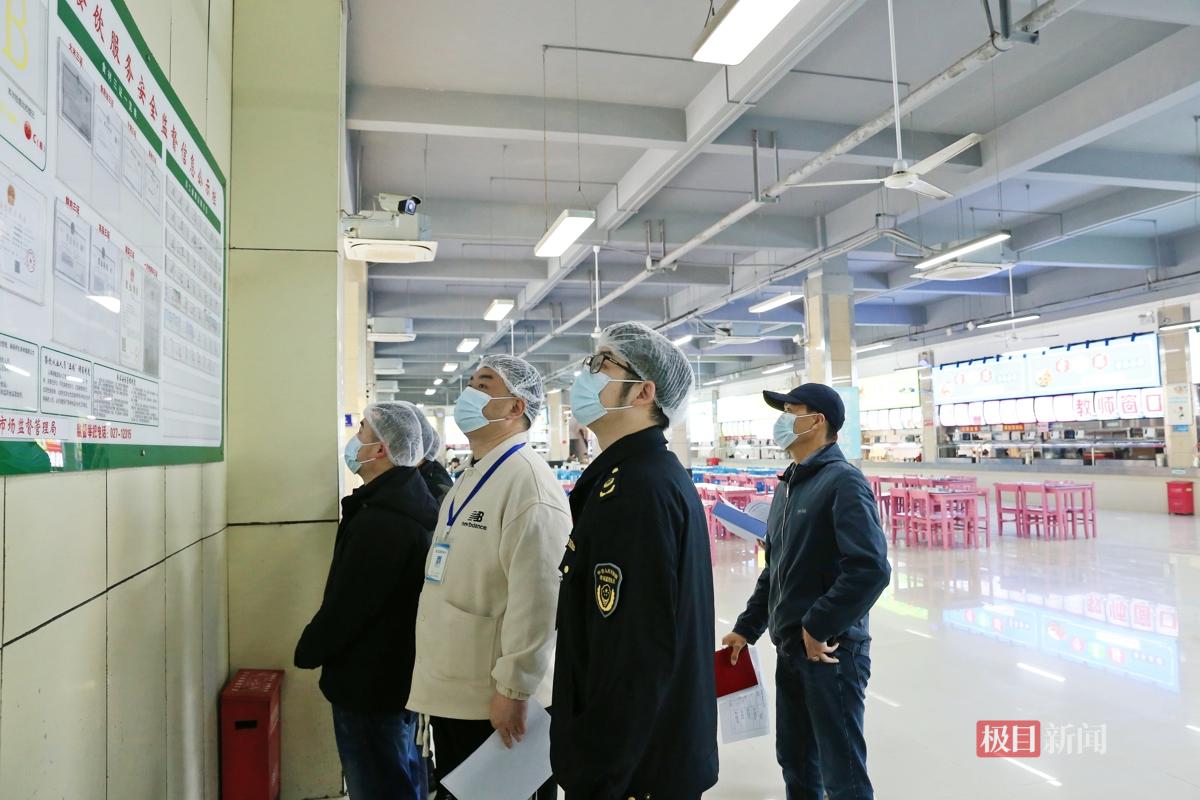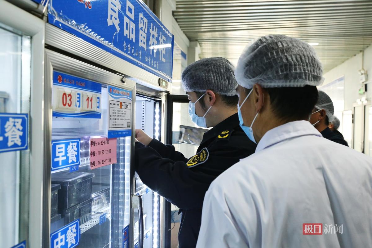 当天,几组检查人员分赴武汉工商学院、湖北中医药大学、武汉科技大学、武汉交通职业学院等学校食堂,分为“资料组”和“现场组”进行交叉检查。每一家食堂都要接受另外两所学校同行“挑刺”。而把这个“互相找茬”机制带到这里的,正是洪山区市场监督管理局青菱市场监管所副所长刘阳。
