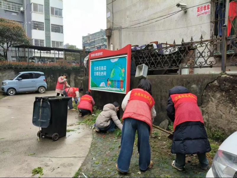 沙羡社区新时代文明实践站率先发力,开展“清洁家园・美化环境”志愿服务活动。活动前期,社区工作人员周密部署,将志愿者合理分组,明确各区域清理责任。志愿者们身着统一的“沙羡社区志愿者”红马甲,携带铁锹、垃圾夹、垃圾袋等工具,深入小区背街小巷、绿化带、墙角等卫生死角,开展全方位环境整治。现场志愿者们热情高涨、分工协作,有的俯身拔除杂草枯枝,有的捡拾白色垃圾,有的清理落叶杂物,同时主动向过往居民普及垃圾分类知识,倡导居民共同守护整洁家园,用实干擦亮社区颜值,将文明理念传递到居民身边。