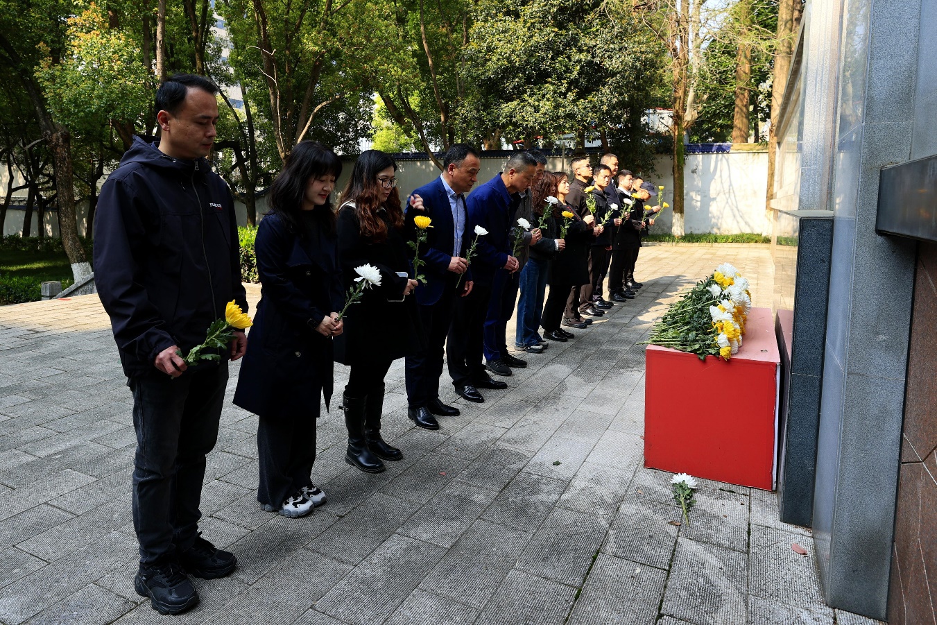 全体人员面向烈士雕像脱帽肃立默哀,以深沉哀思告慰英烈忠魂。